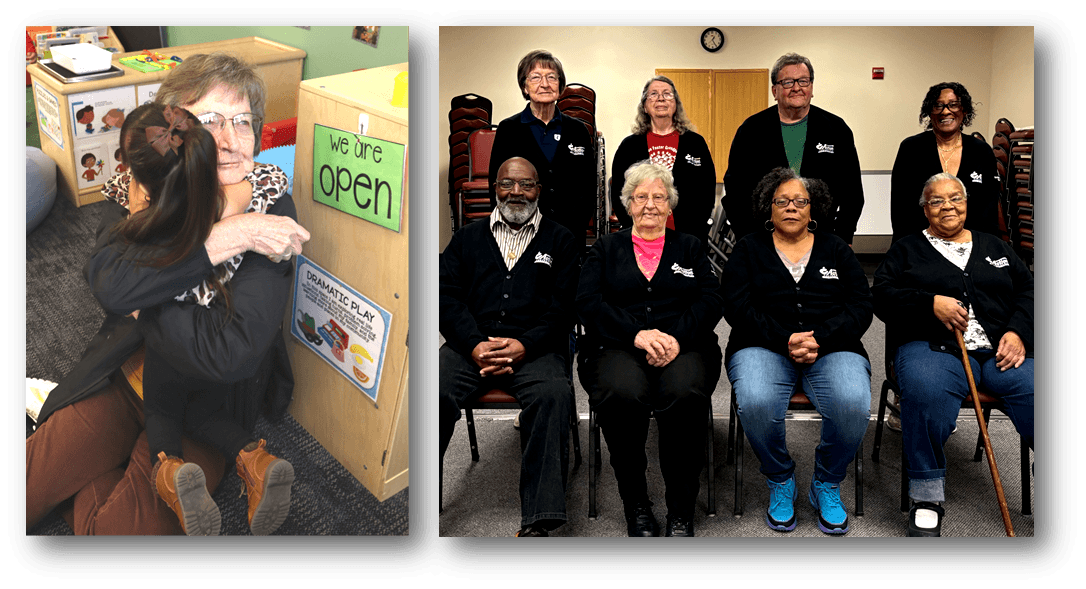 In partnership with AmeriCorps Seniors, the Foster Grandparent Program uses a dual approach to benefit the life of the senior volunteer and the child. Not only do volunteers often experience higher life satisfaction, but the children are being prepared for kindergarten with school readiness skills.